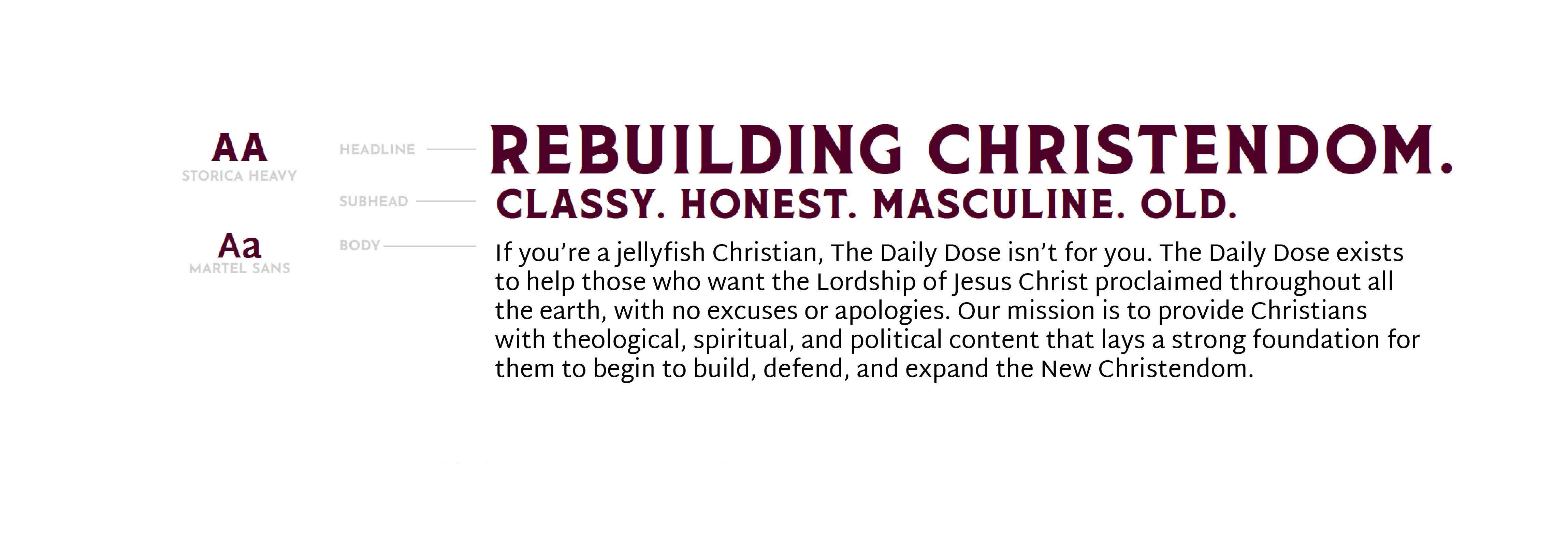 More importantly, this brand identity positions the Daily Dose as an authoritative voice in its niche, building trust with its specific target audience, and inspiring them to rebuild the ruins of Christendom, one man and one family at a time. ✦