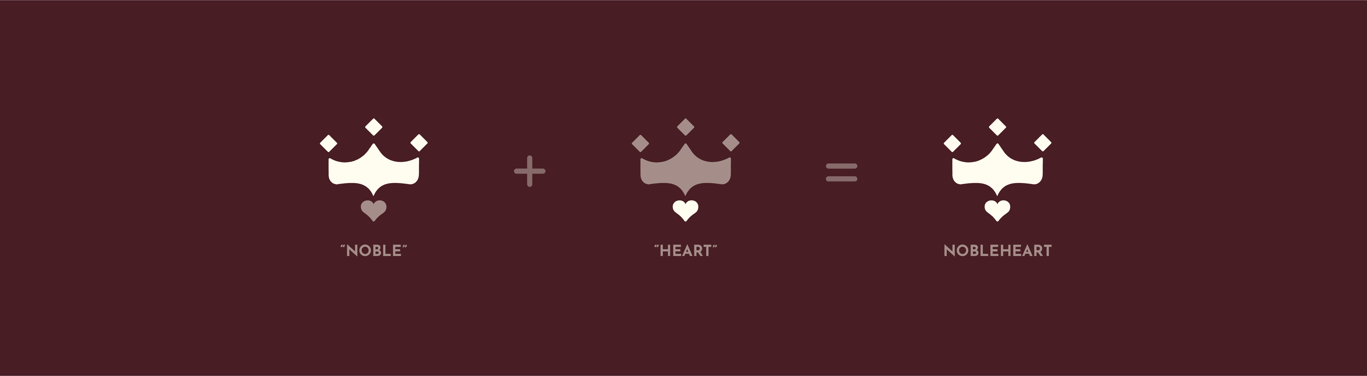 Nobleheart's name is inspired by Luke 8:15, which says: "But the seed on good soil stands for those with a noble and good heart, who hear the word, retain it, and by persevering produce a crop." The logo's brandmark is a visual representation of the name of the brand: "noble" being represented by the crown, with a literal heart standing in for the "heart."